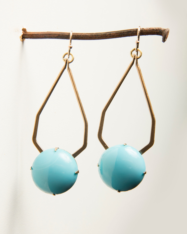 Vintage Turquoise Cabochon / Plated Gold Metal / 2 3/4"L/14kt. G.F. French Wires