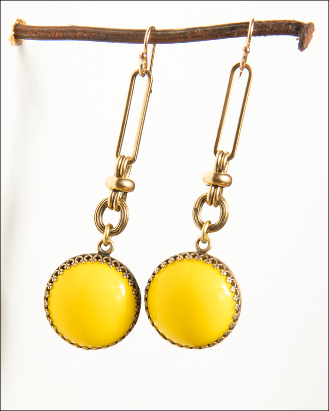Vintage Yellow Cabochon / Plated Gold Chain 2 3/4" L 14kt. G.F. French Wires