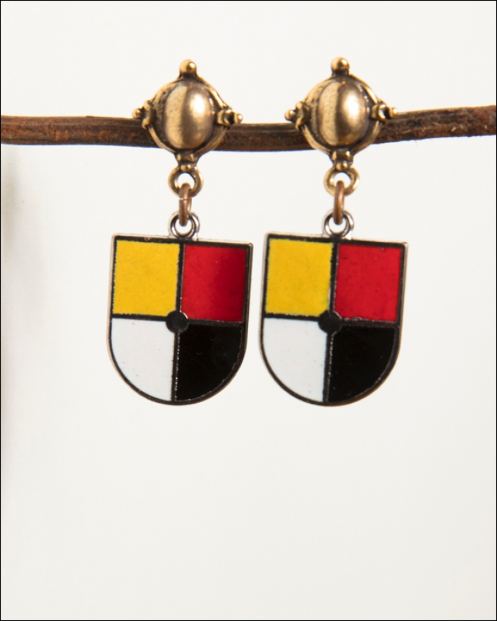 Vintage Mondrianesque Shield / 1 1/4" Length / Stainless Steel Post Top