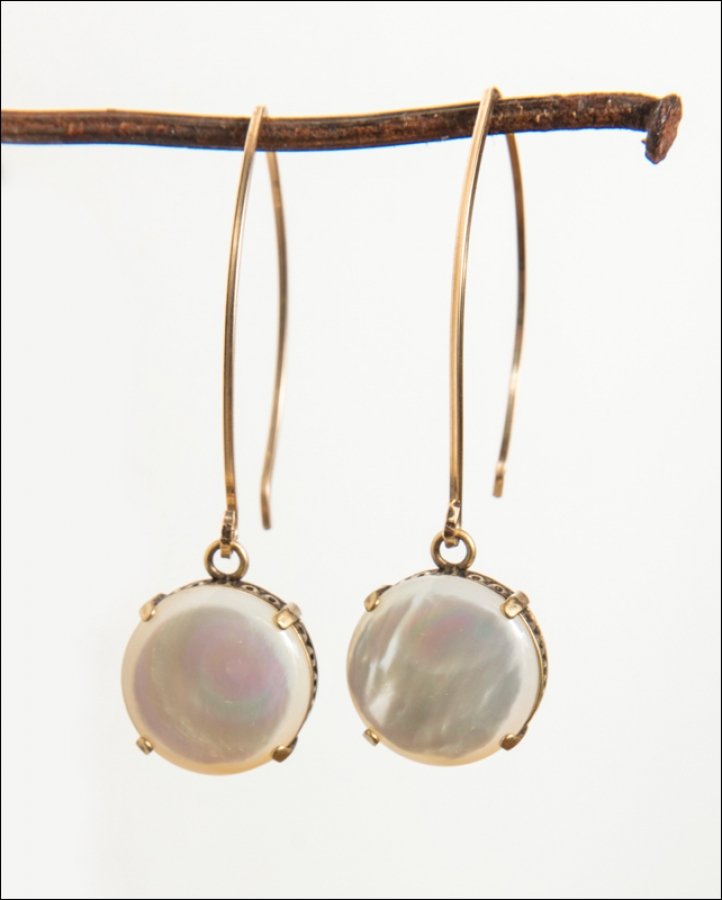 MOP Cabochon / Ornate Brass Ox Bezel 2.5" Length / 14kt. Gold Fill Wire