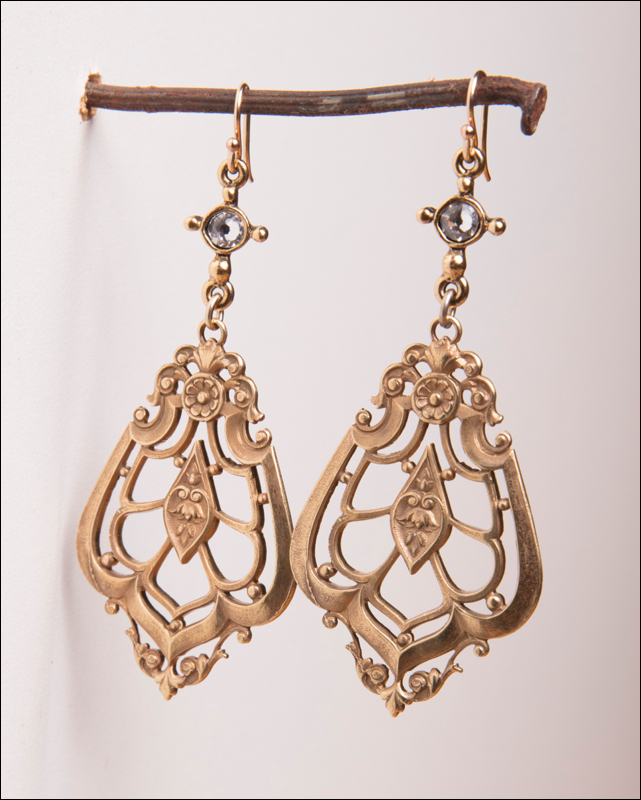 Vintage French Brass Die Cast Teardrop Pendant / 14kt. G.F. French Wires / 2.5"