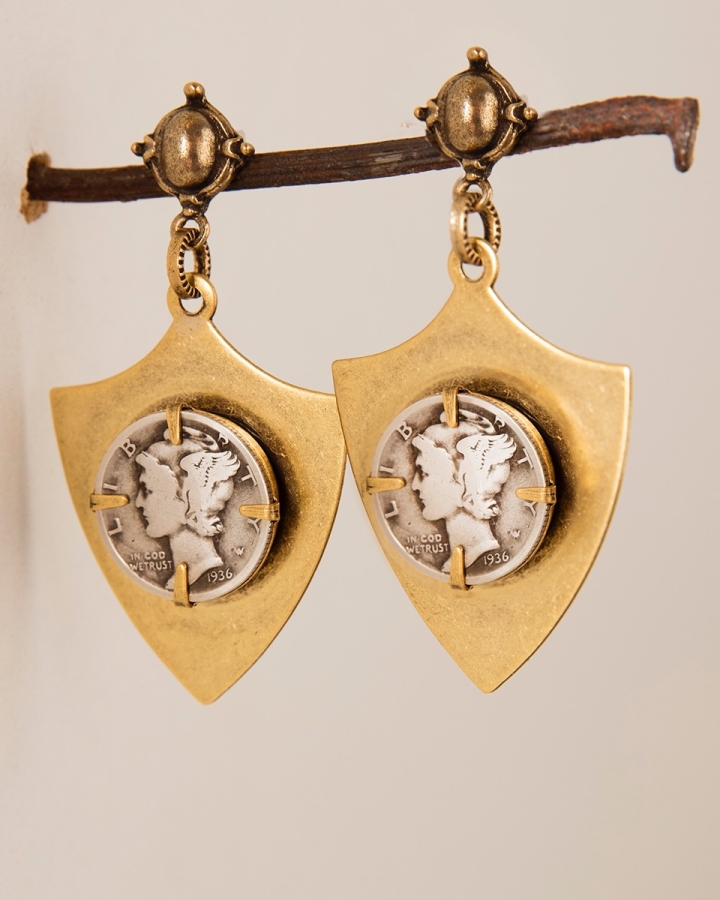 Vintage USA Silver Mercury Dime / Plated Gold/2"Length/14kt. G.F. French W