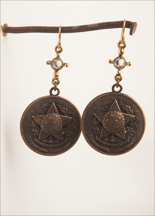 Vintage US Coat of Arms Brazil Token Crystal/2.5"L/ 14kt. G.F. French Wires