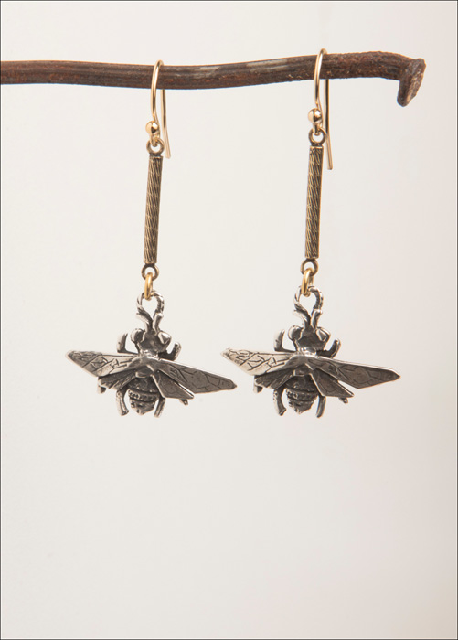 Sterling Silver Rustic Bee 2" Length / 14kt. G.F. French Wires