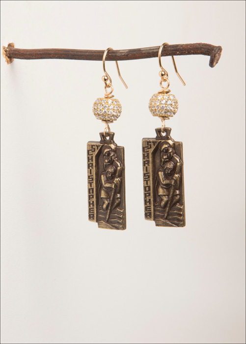 Vintage St. Christopher & Pave Crystal 2" L / 14kt. G.F. French Wires