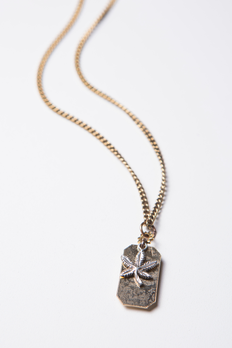 Sterling Pot Leaf Hammered Tag Heart Lock 24kt. Plated Gold Chain 19" Length.