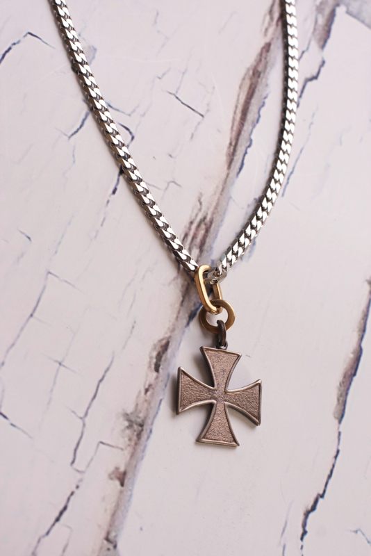 Bronze Maltese Cross / Stainless Steel Chain / 18" Length