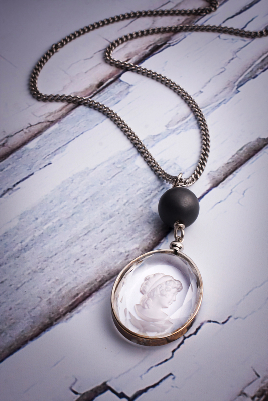 Vintage Cameo / Bushed Hematite / Rock Crystal