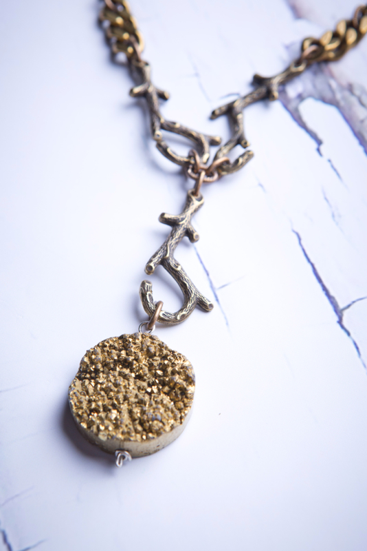 Gold Dipped Druzy Geode / Bronze Chain / 35" / Length / Wear Long or as a Choker
