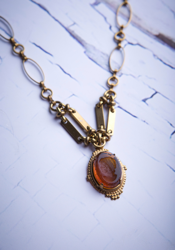Vintage & Recycled Topaz Crystal Cameo / 15.5 to 18.5" Adjustable Length