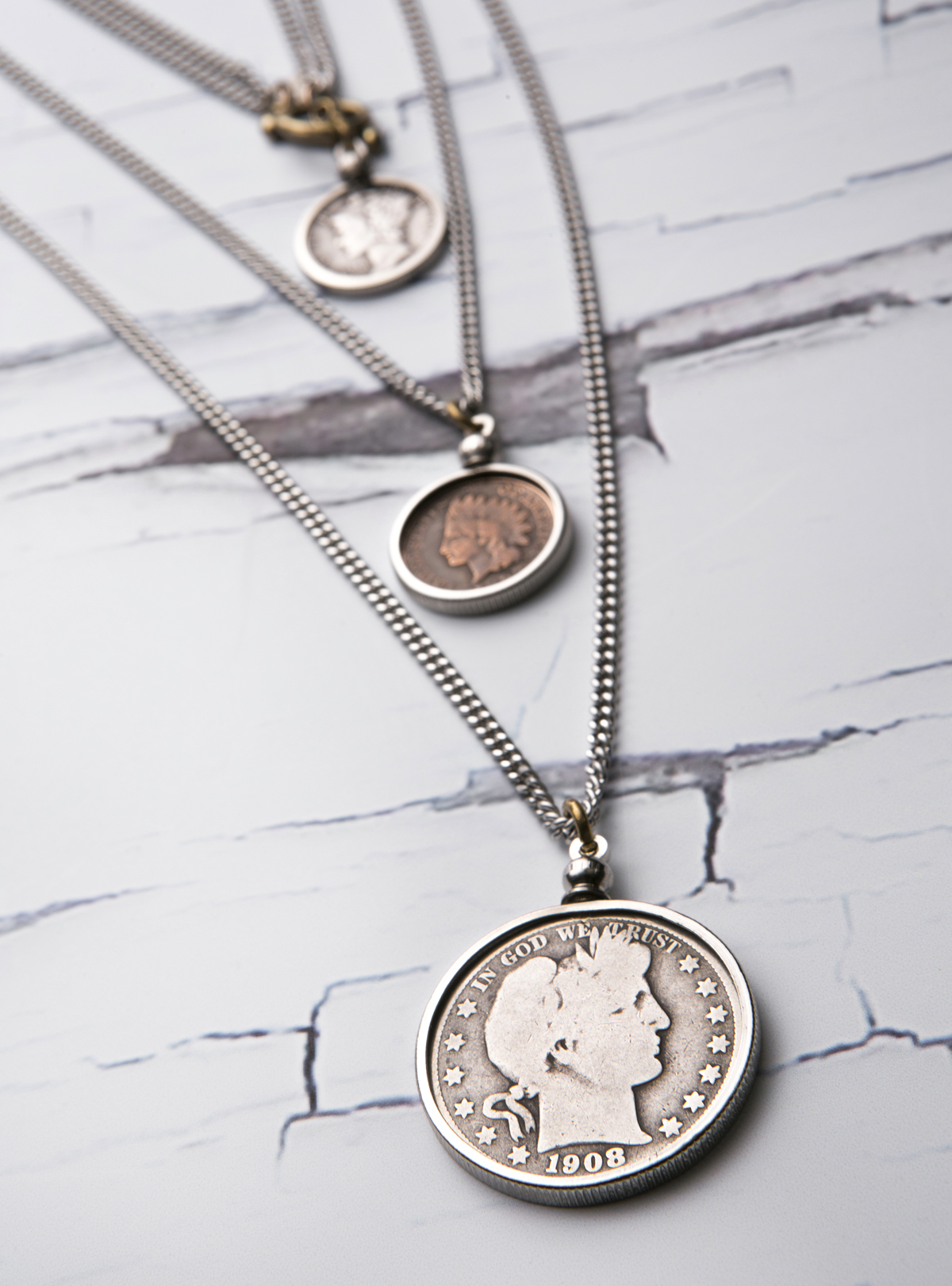 Vintage Barber 1/2 $ / Mercury Dine / Indian Head Penny / Stainless Steel Chain / Wear Long or Choker / 34" Length