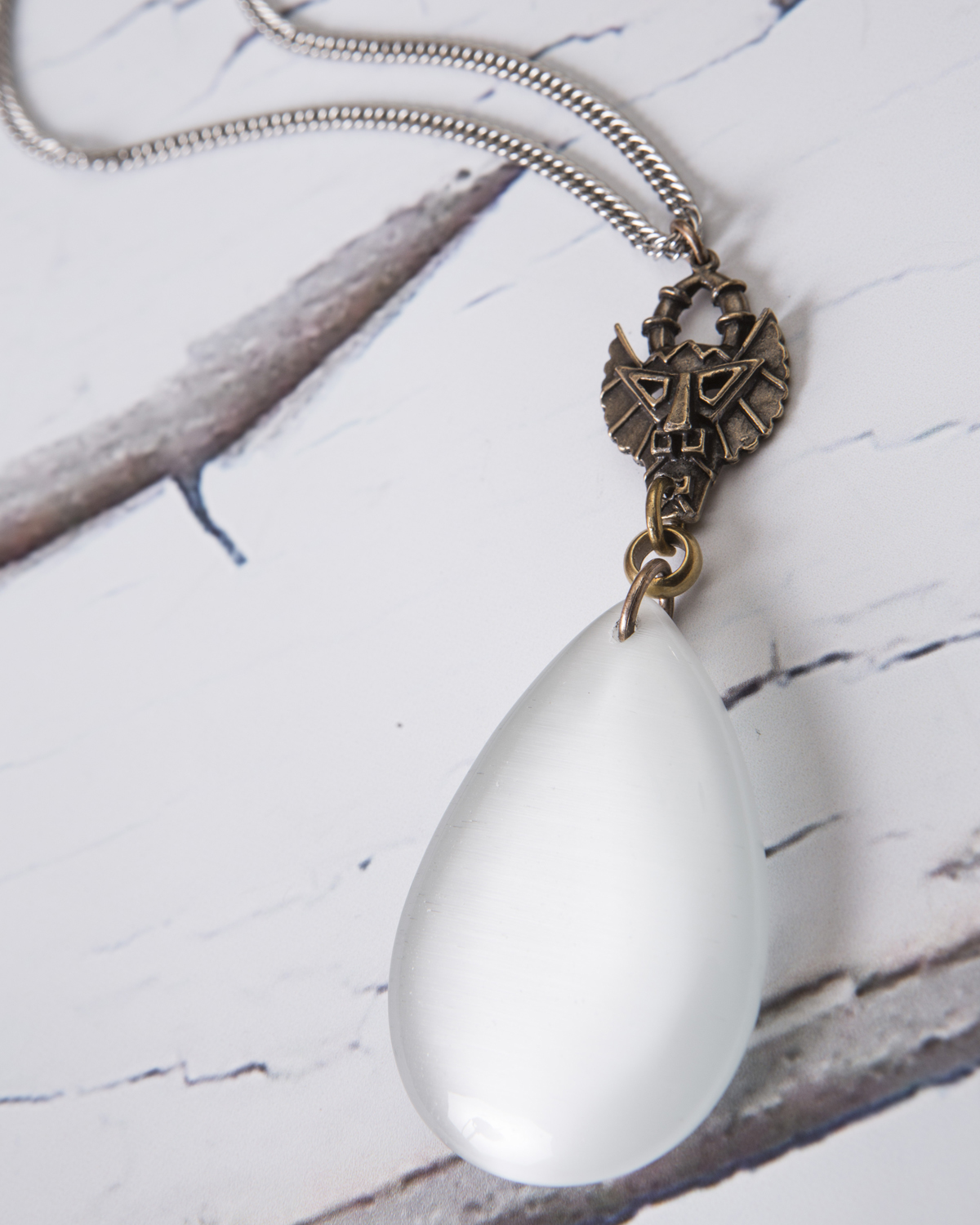 Vintage & Recycled Lion Charm / White Cats Eye