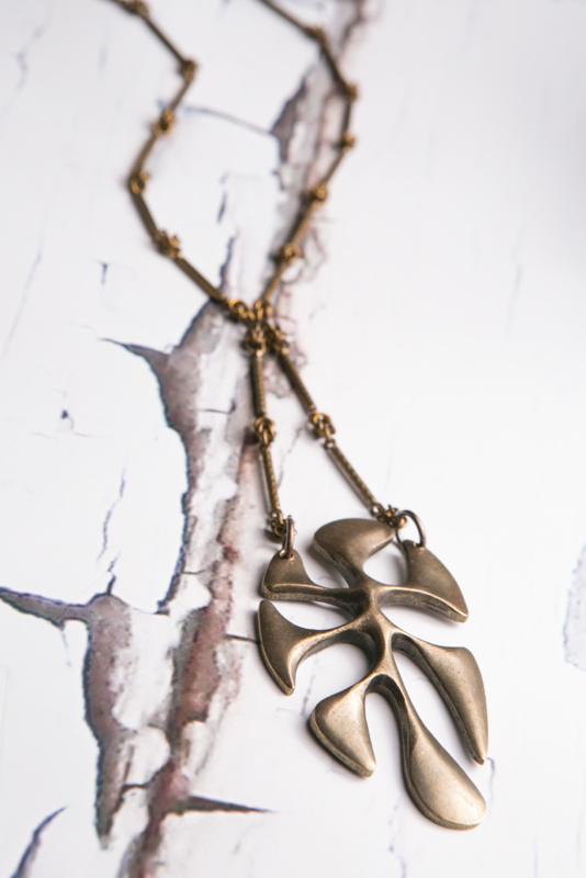 Vintage Mod Pendant / Brass / Bronze Chain & Elements / Wear Long or Choker Length / 34"