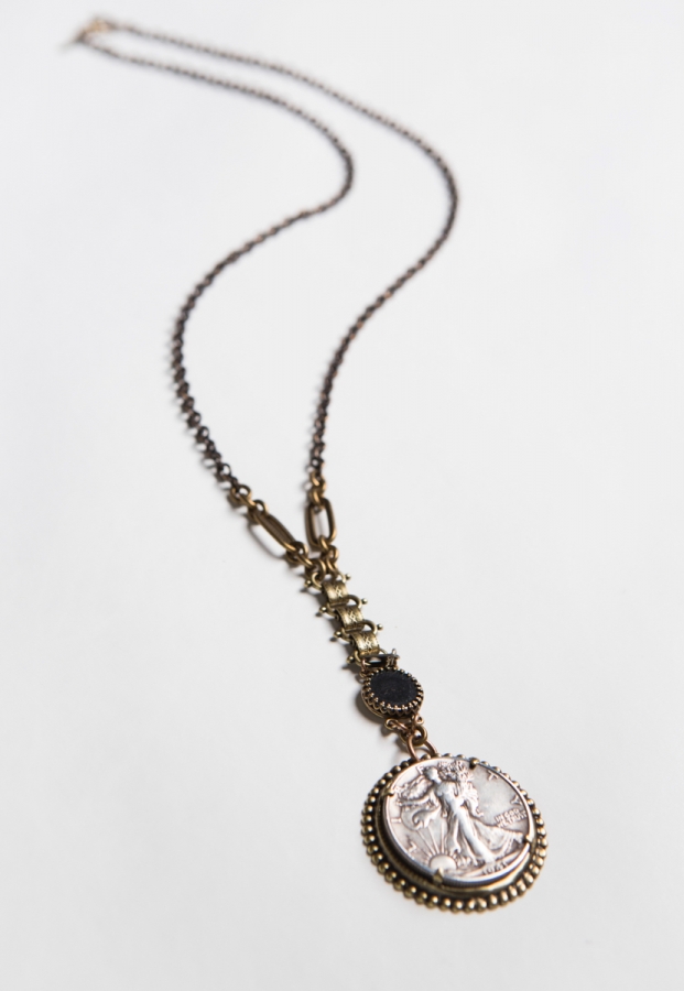Vintage Silver Walking Liberty 1/2 Dollar / Hematite / Brass & Bronze Elements / 27" Length