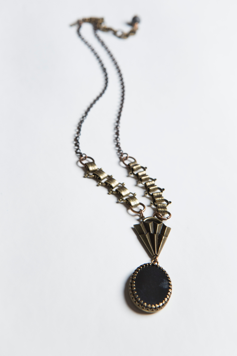Hematite Cabochon / Brass & Bronze Chain & Elements / 17.5-19" Adjustable Length