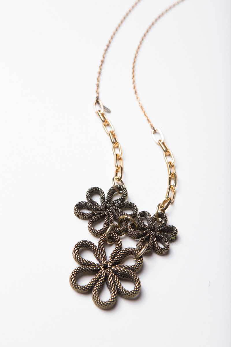 Brass Mesh Flower Shape Pendants 24kt. Plated Gold Chain 34" Wear Long or Choker Length.
