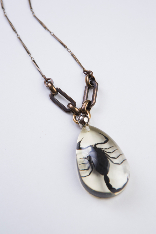 Scorpion Pendant in Resin / Oxy Brass Chain / 15-17.5 Adjustable Length