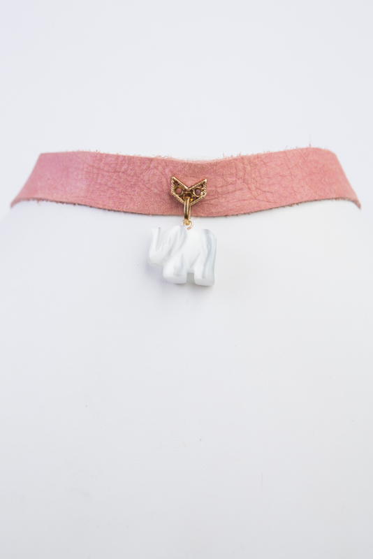 Pink Italian Nubuck Leather / Cats Eye Elephant Choker Length / Double to wear as Bracelet