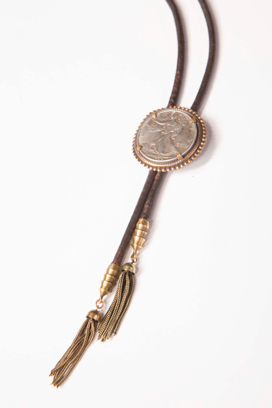 Vintage Solid Silver Walking Liberty Brass Tip / Tassel Bolo / 36" Length