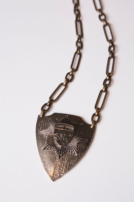 Vintage Shield Pin / Brass Ox Chain 16-19" Adjustable Length