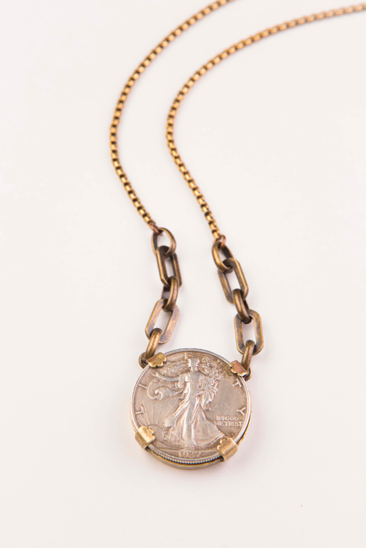 Vintage USA Walking Liberty Half Dollar / Plated Gold Bronze Chain / 16-18.5" Adj. Length