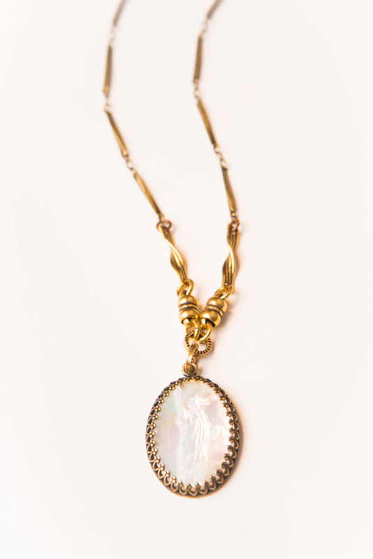 Statue of Liberty MOP Cabochon / Brass Ox Chain 16.5-18" Adjustable Length