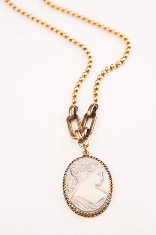 Glass Cameo / Plated Gold / FWP Wear Long or Double as Choker / 34" Length