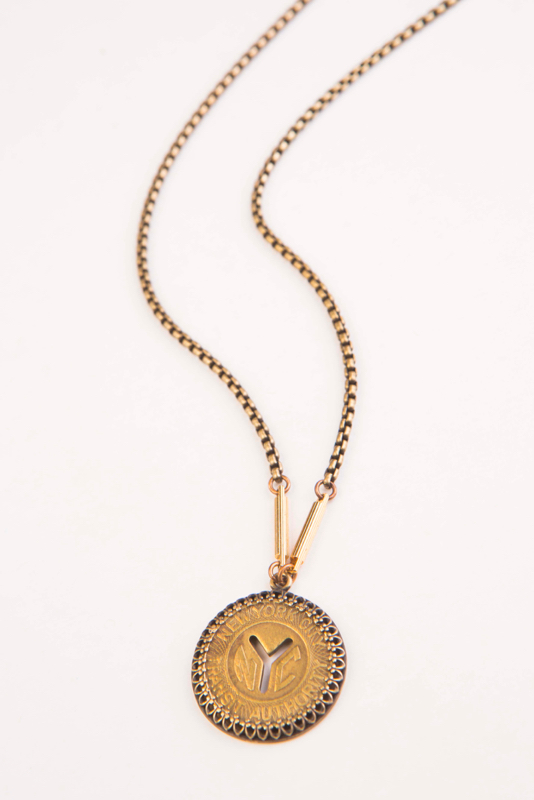 Vintage NYC Large Subway Token / Brass Ox Bronze Chain / 18" Length