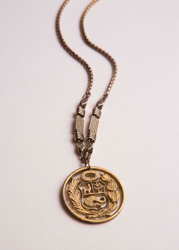 Hand Sawed Vintage Peruvian 1 Sol de Oro Plated Gold/Bronze / 16.5-18.5" Length