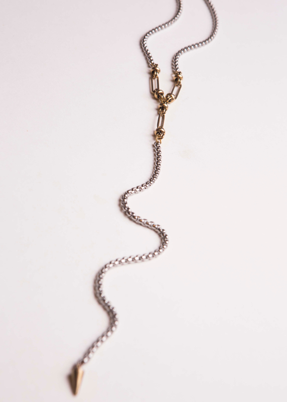 Stainless Steel & Plated Gold Y Necklace 20" Length / Double to wear as a Bracelet