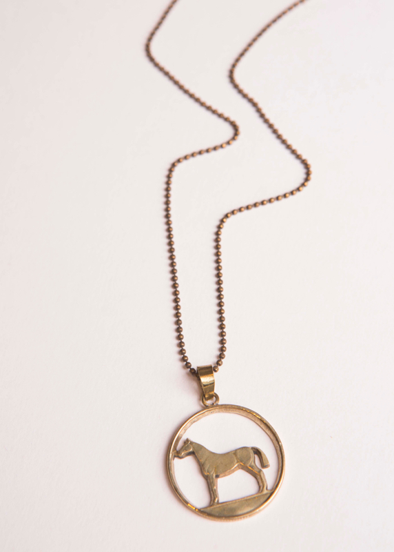Vintage Hand Sawed Irish 20 Pence Coin Horse Brass Ox Chain / 16-18" Adj. Length