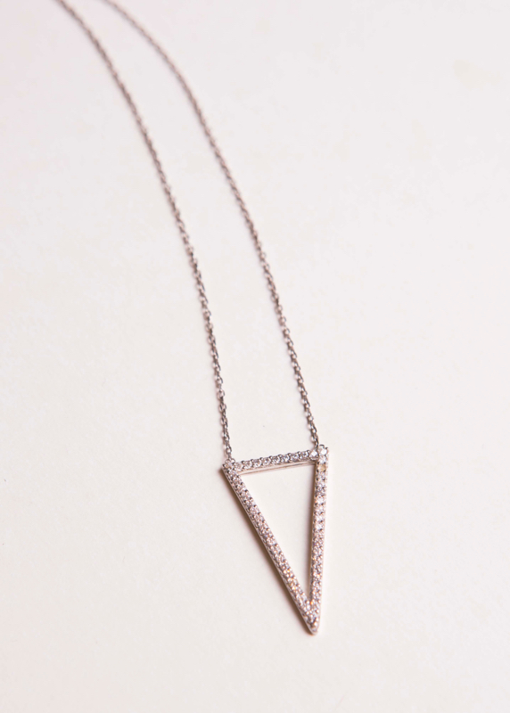 Sterling Silver CZ Triangle & Chain 18.5-19.5" / Adjustable Length