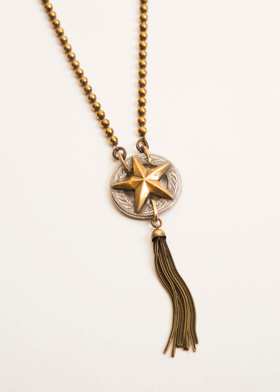 Texas Ranger Star Concho / Plated Gold Chain / 32" Length / Double as Choker