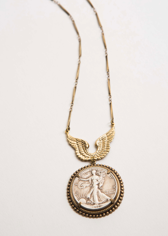 Vintage Walking Liberty Coin / Brass Ox 34" Length / Double as Choker