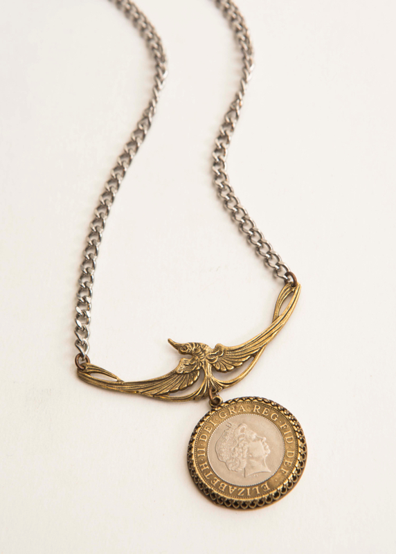 Vintage 2 Pound British Coin / Stainless Chain / 15.5-18" Adj. Length