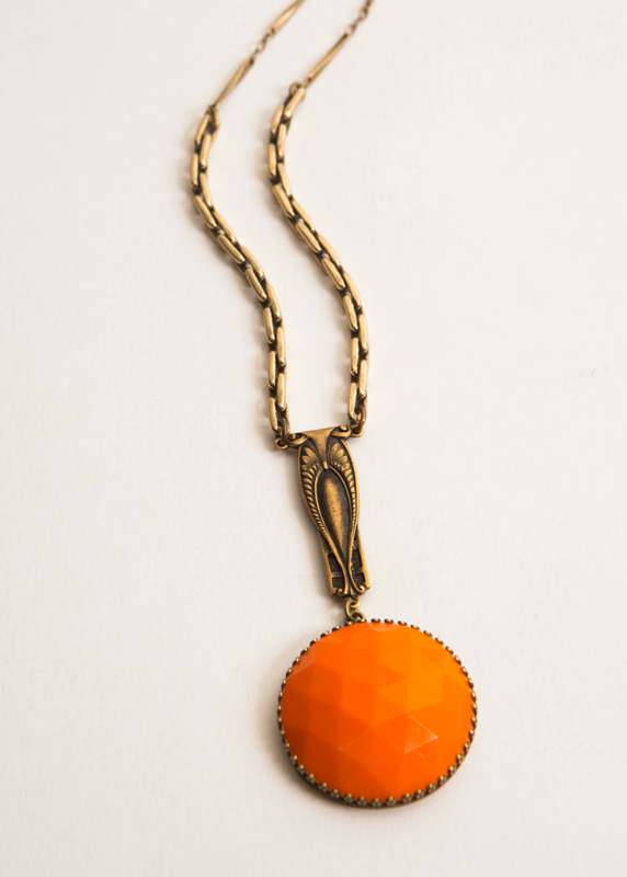 Vintage Hat Pin Cabochon/ Brass & Bronze Chain / 16-17.5" Adj. Length