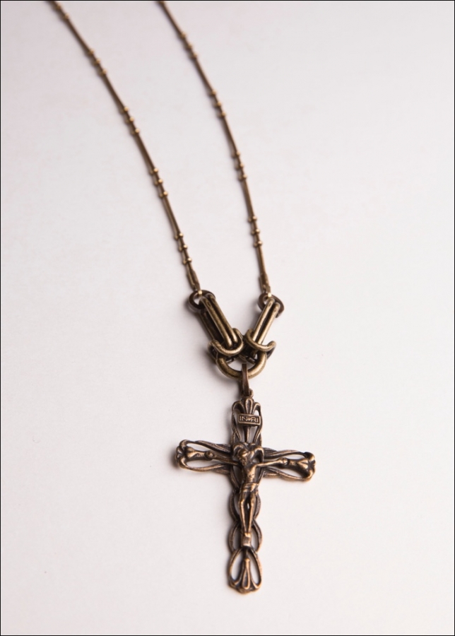 Bronze Rosary Cross / Plated Gold Chain 33" Length / Wear Long or Double