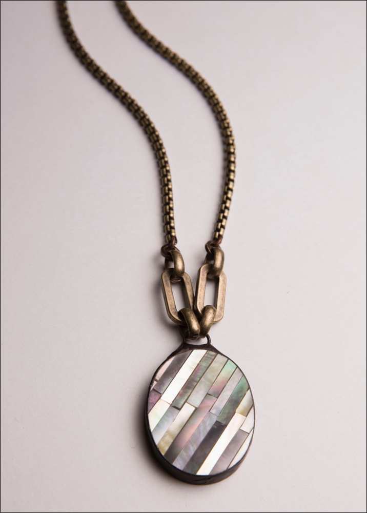 Inlay Abalone Shell Pendant / Bronze Chain / 16-18" Adj. Length
