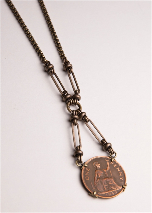 Vintage British Penny / Bronze Ox Chain 16.5-18" Adjustable Length
