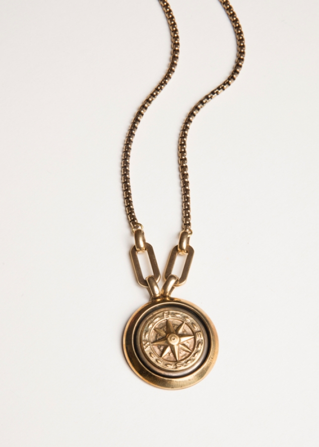 Vintage Compass Pendant / Plated Gold Bronze Chain / 16-18" Adj. Length