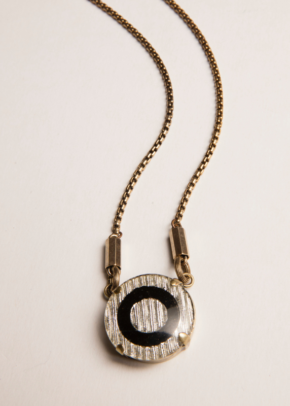 Vintage Foil Black & Silver Metalic Cabochon / 16-18" Adj. Length