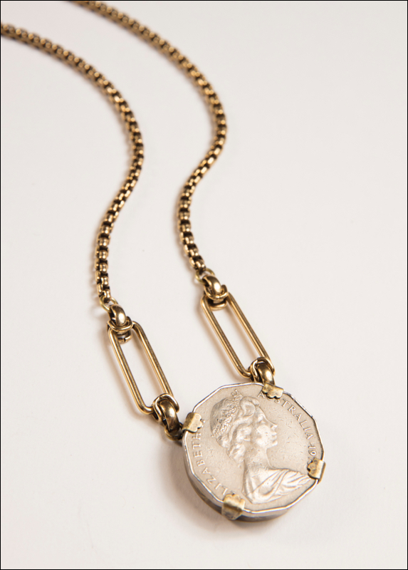 Vintage Australian 50 Cent Coin / Plated Gold Bronze Chain / 16.5-20" Length.