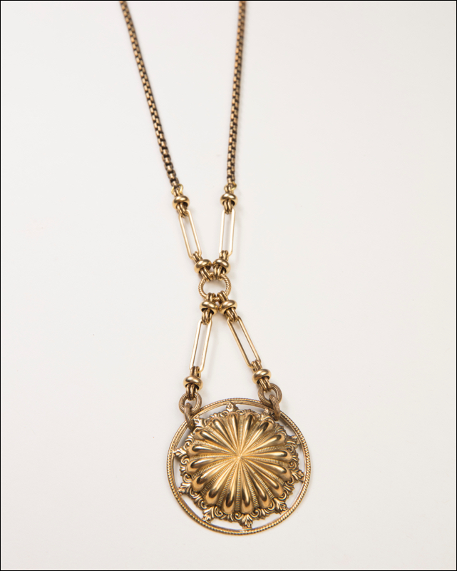 Vintage Domed Pendant / Bronze Chain 35" Length / Wear Long or Choker
