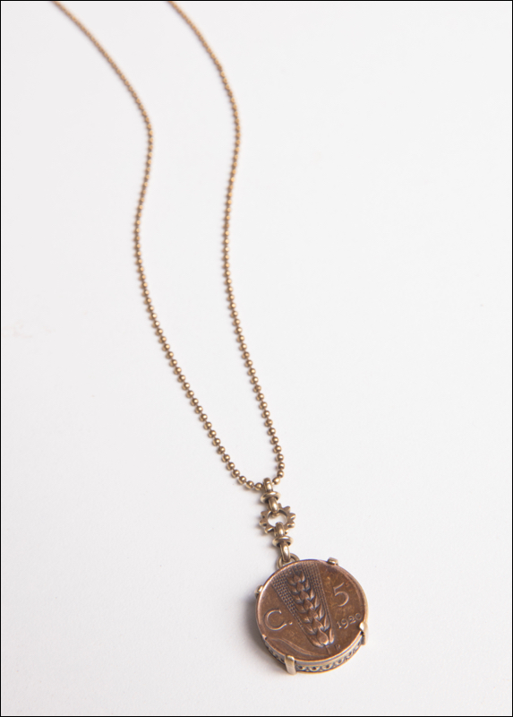 Vintage Bronze Italian 5 Centesimo Coin Plated Gold / 16-18.5' Adj. Length