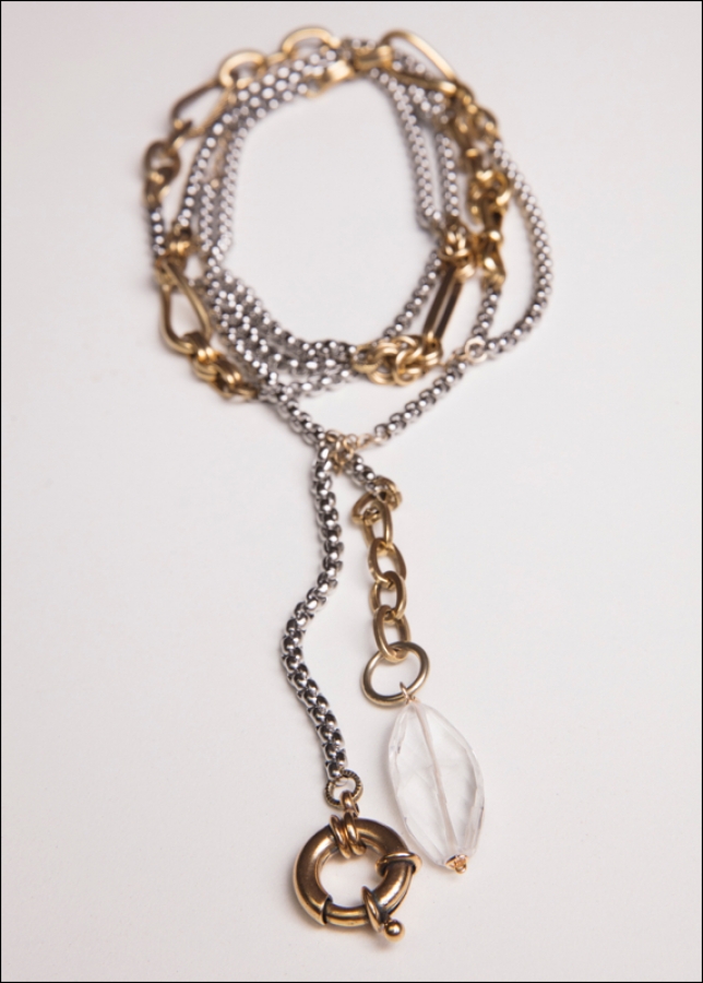 Plated Gold Mixed Chain Lariat / Wear Long / Double / Triple / Bracelet / 55"
