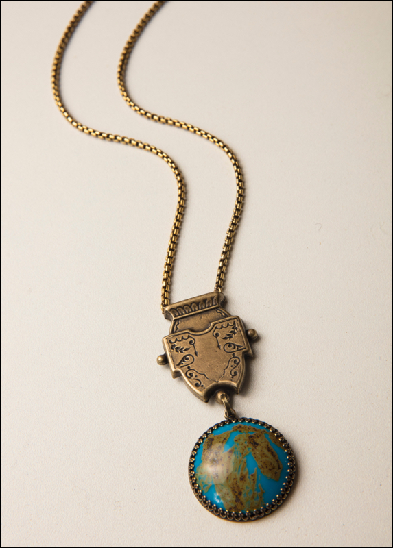 Vintage Gorgeous Blue Cabochon / Plated Gold Bronze / 26" Length.
