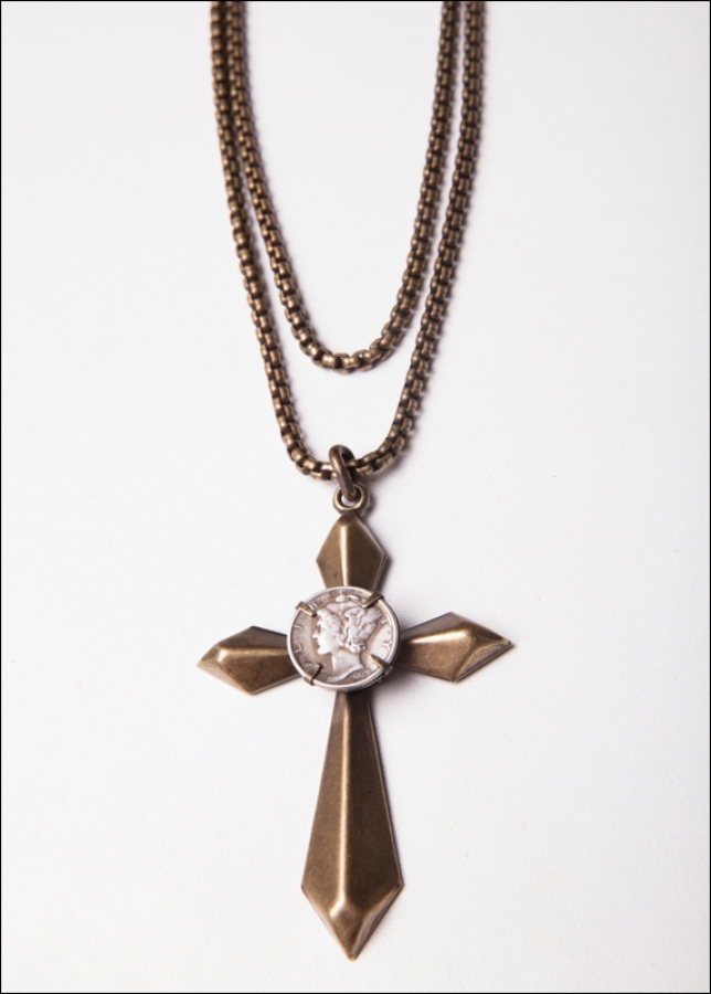 Vintage USA Mercury Solid Cross Silver Dime Bronze Chain / 35" Length / Toggle