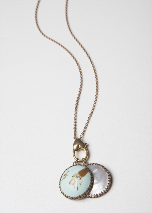 Vintage Heart Clasp / Vintage MOP & Blue Pendants/16.5-18.5" Adj. Length