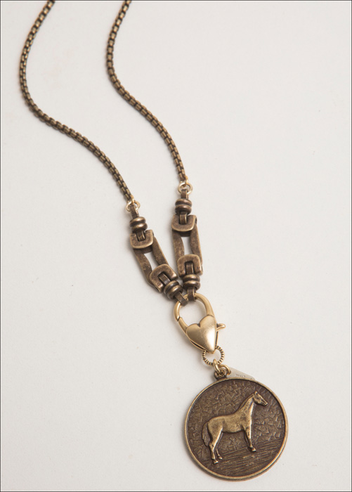 Horse Chain & Heart Lobster Claw Bronze Chain / 16.5" Length