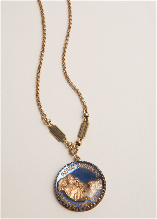 Vintage Mount Rushmore Cabochon / Plated Gold Chain / 17-19" Adjustable Length